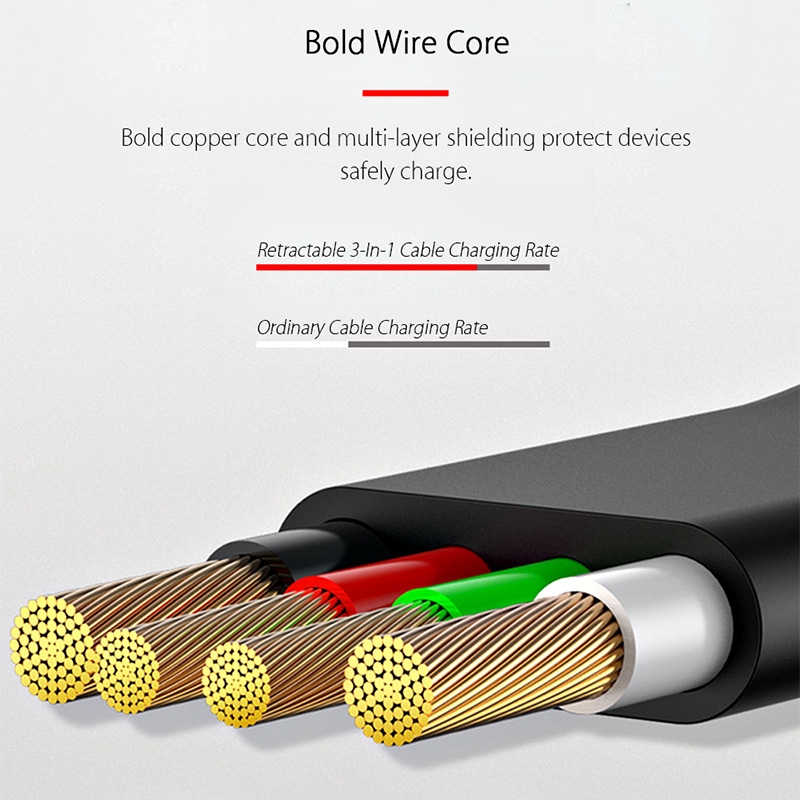 3 In 1 Retractable Micro USB Charge Cable Multi USB Charger Cable USB C Type-c Universal Cable
