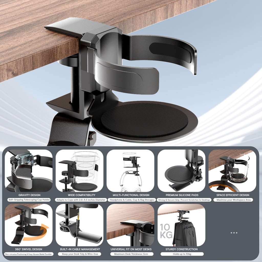 360 Aluminum Alloy Metal Gaming Display Under Desk Table Drink Cup Headphone Headphone Hook Bracket Installation
