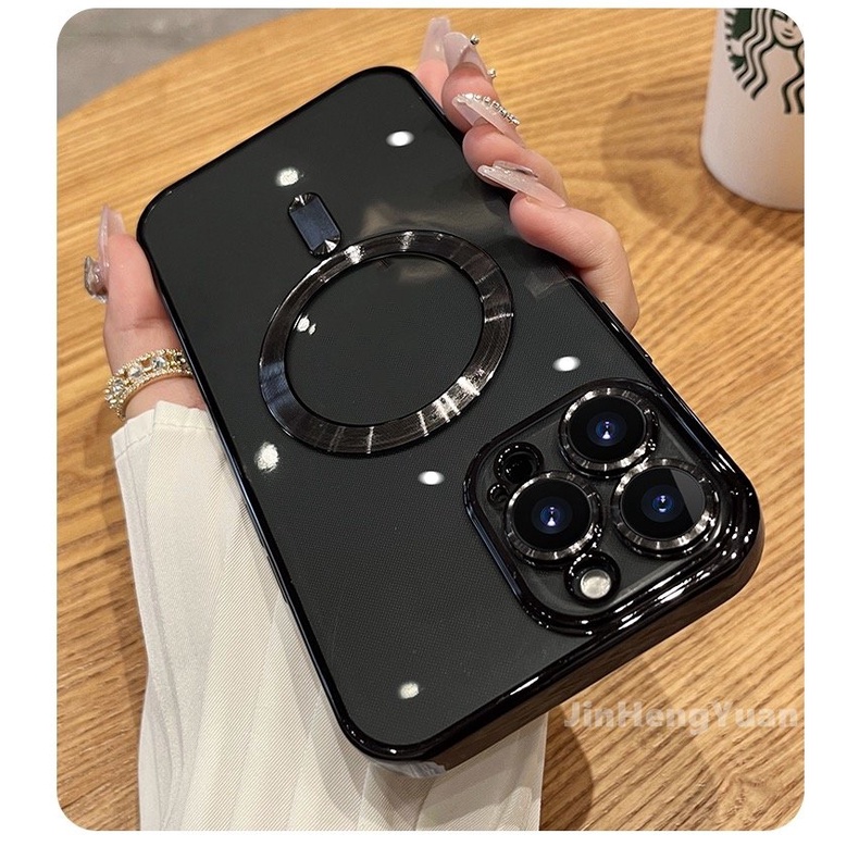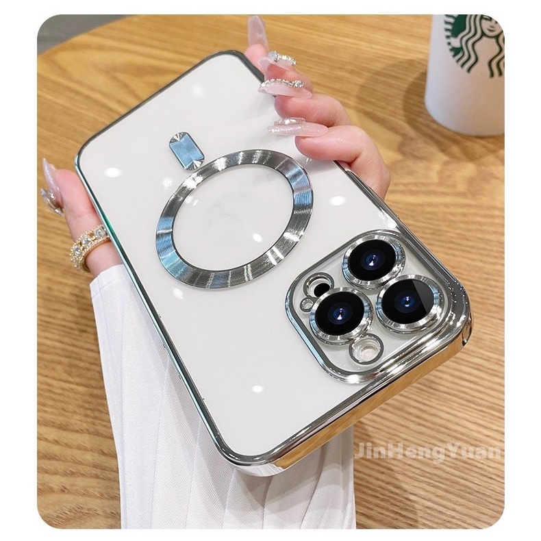 Luxury Transparent Magnetic Case for IPhone 14 Plus 13 12 11 Pro Max Clear Plating Silicone Cover with Lens Film Protection