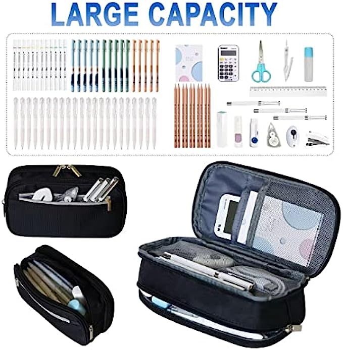 Unique Design: Large capacity space with 3 layer zipper design pencil pouch, classified storage, easy to organize. One side compartment have 4 roomy separately. The 2 built-in mesh compartments can keep important small notes, cards, and tickets in an easy-to-view built-in mesh compartment. And the other divide compartment can keep your frequently used pens in place and for quick access.