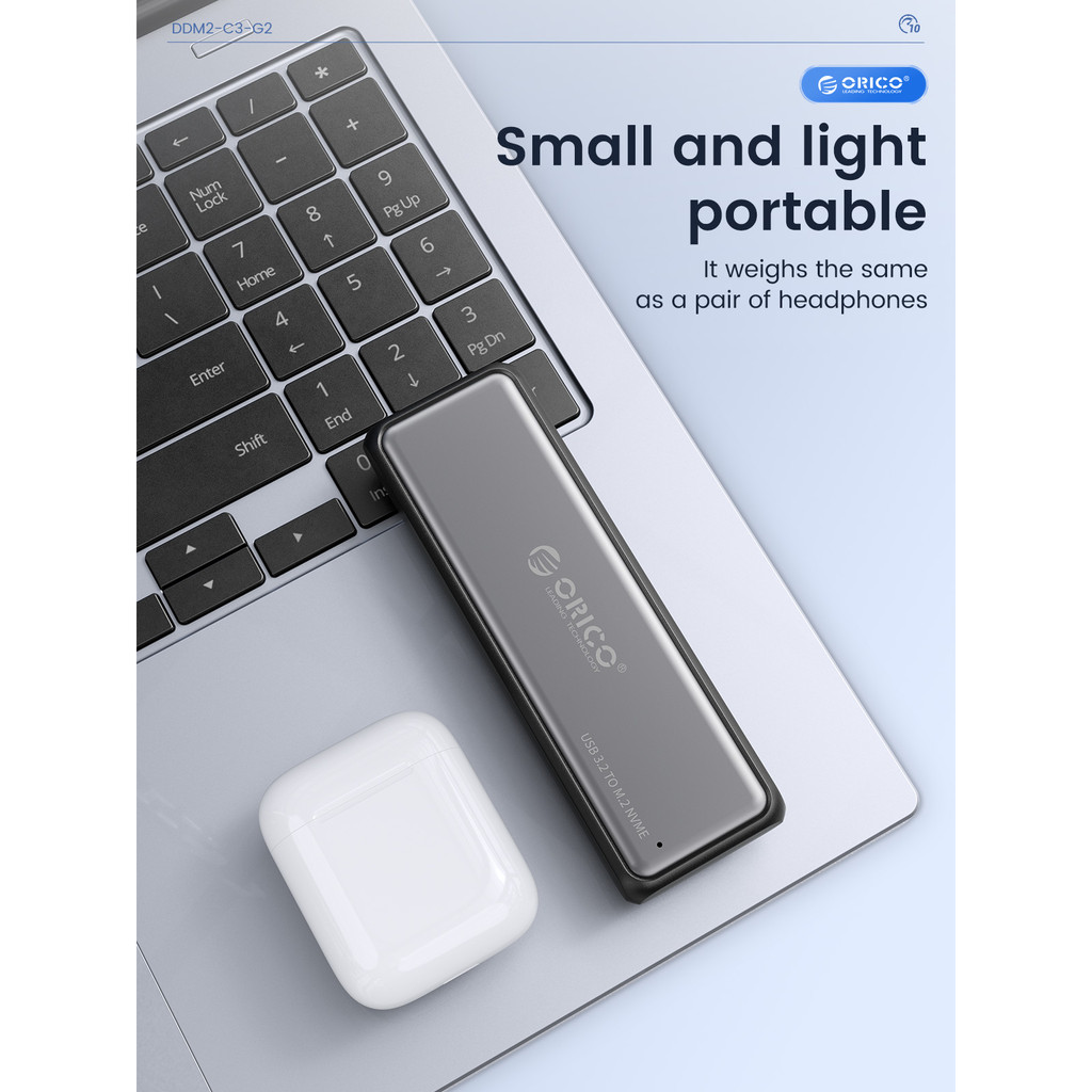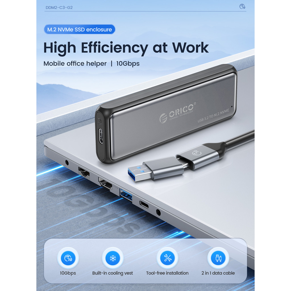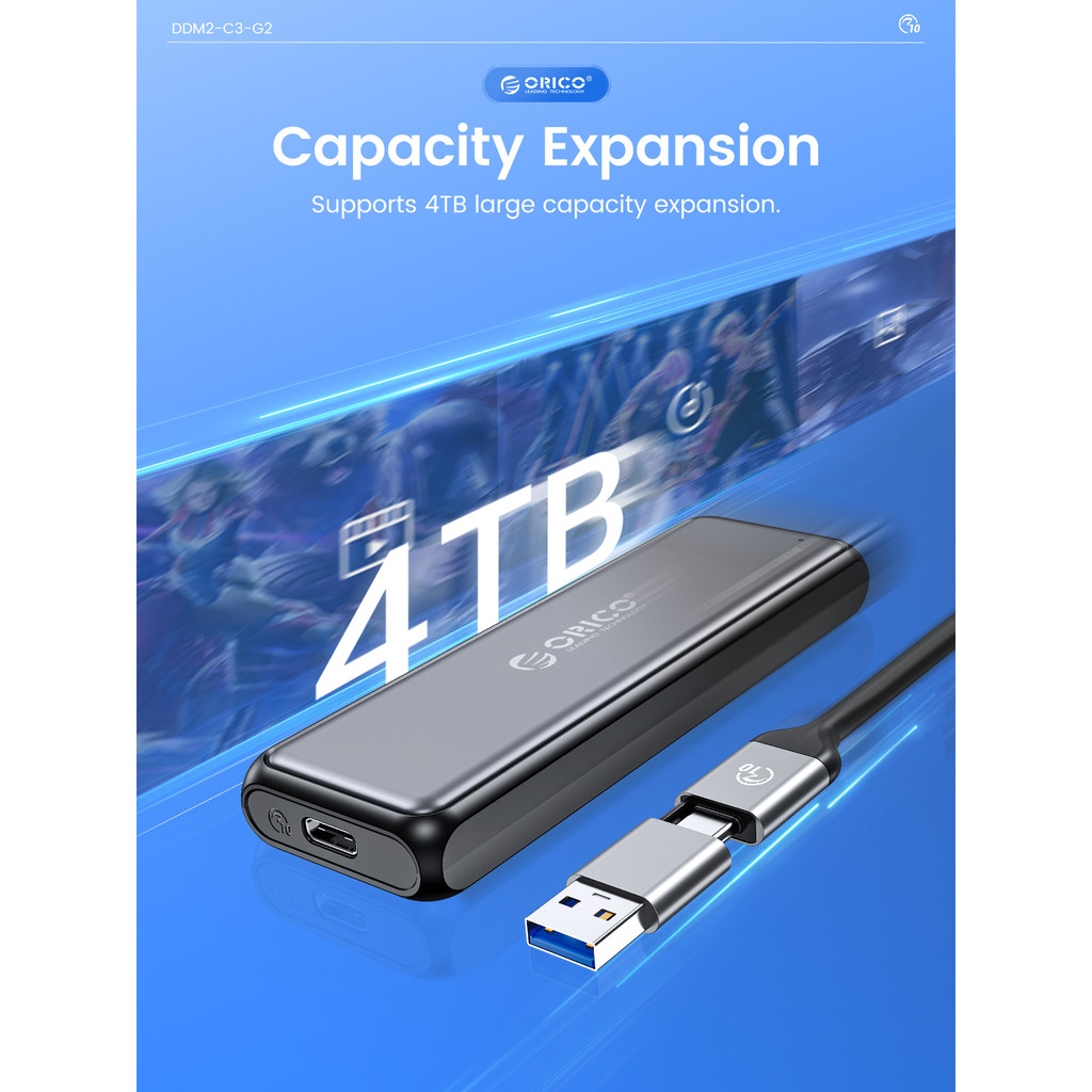 ORICO M.2 NVMe/SATA SSD Enclosure 10Gbps Tool Free M2 SSD Aluminum Enclosure Solid State Drive Case Laptop Computer Accessories (DDM2)