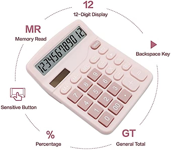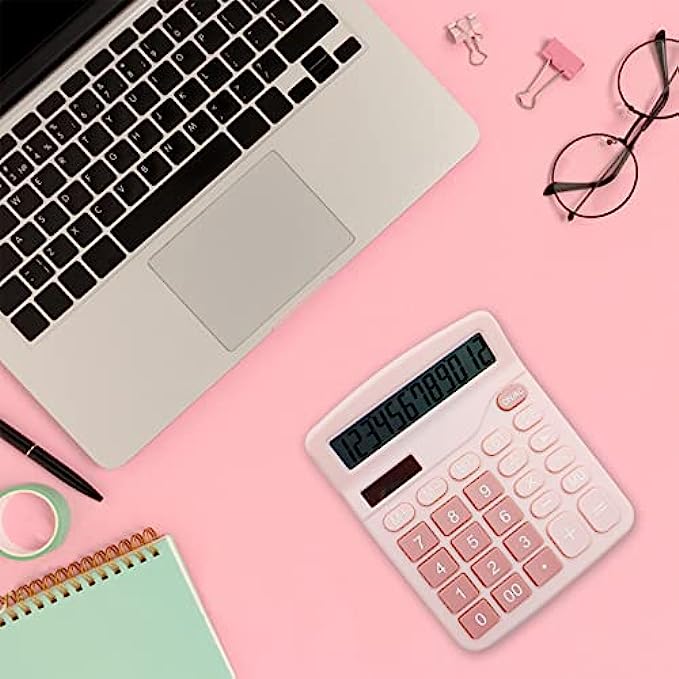 Pink Calculator, UPIHO Basic Office Calculator, Desktop Calculator 12 Digit with Large LCD Display for Pink Office Supplies with Sensitive Button, Pink Office Supplies, School Supplies for Teen Girls
