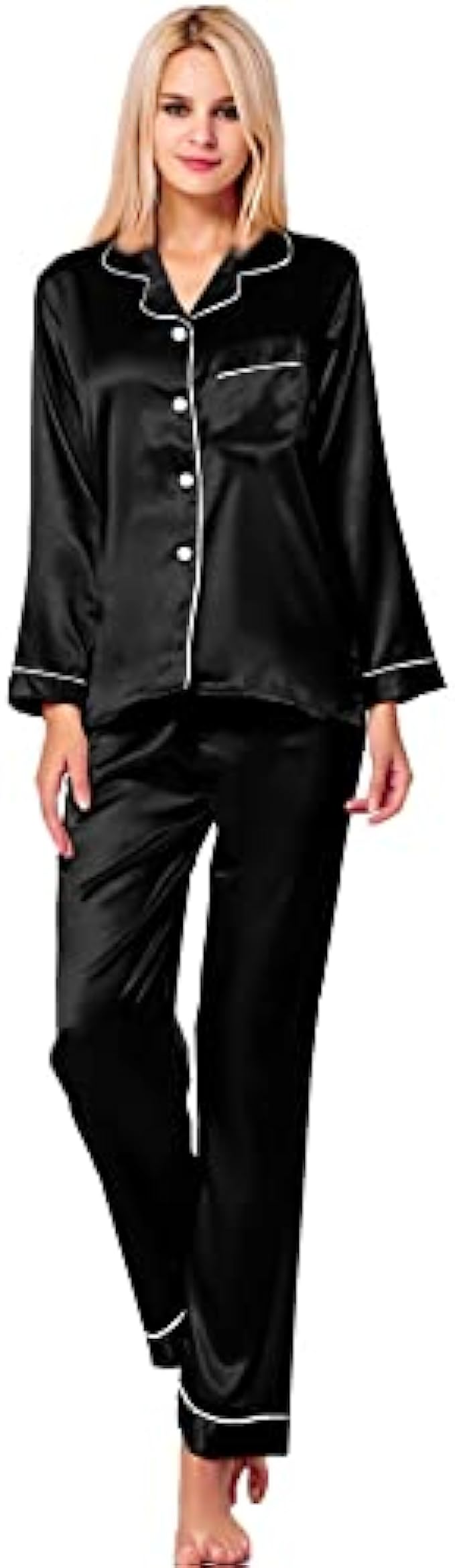 • Materials: This lightweight pajama set is made of lightweigh silk satin, soft,breathable and skin-friendly, help you have a sound sleep.