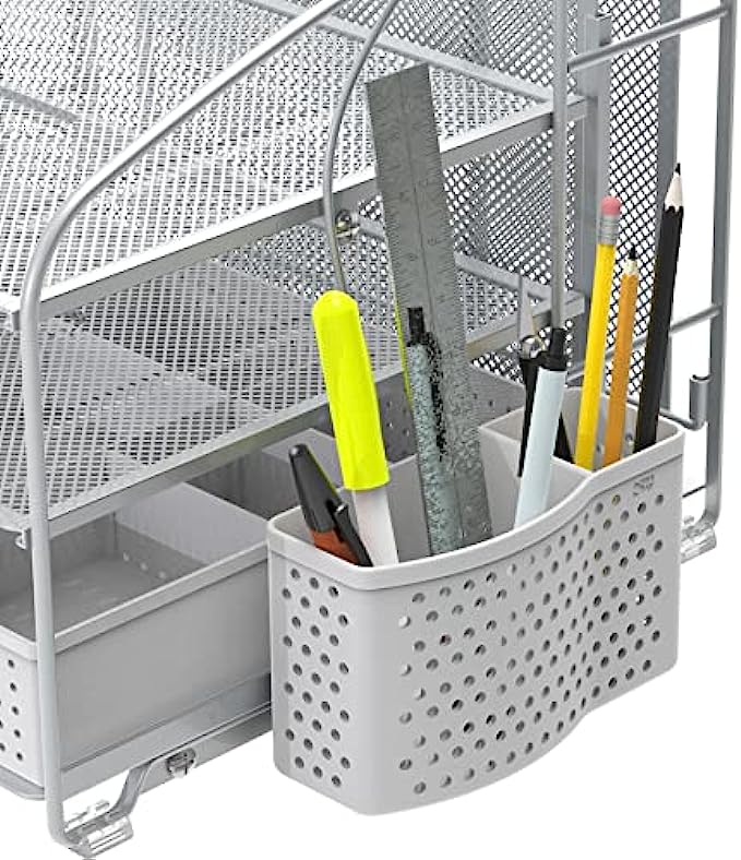 SimpleHouseware Desk Organizer 3 Tray w/Sliding Drawer, Hanging File Holder and Pen Holder Accessory, Silver
