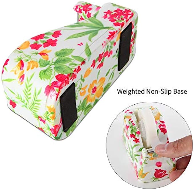 VIBRANZ-LAB Cute Tape Dispenser Desk Home Office Desk Supplies Fun Desk Accessories Floral Office Tape Dispensers Cute Office Supplies for Women Desk Weighted Non-Skid Non-Slip Base