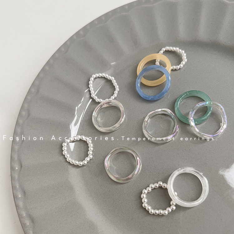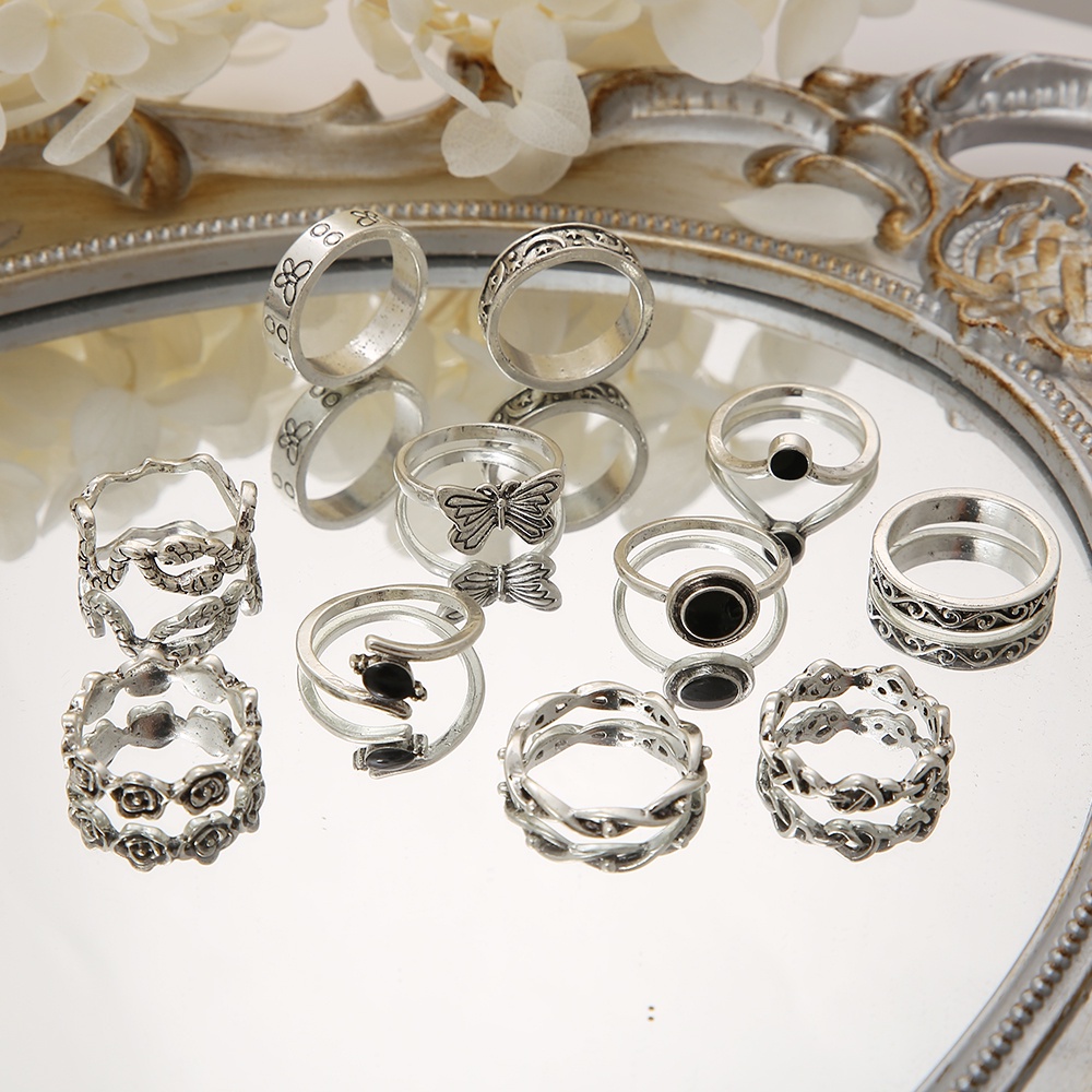 YEEZII 11pcs/set Fashion Y2K Adjustable Oil Dripping Snake Bead Ring Set Resin Butterfly Twist Ring Accessories Jewelry
