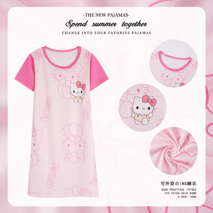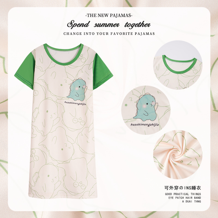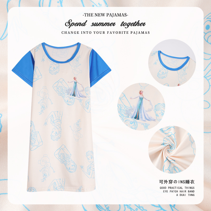 Baby Girl Clothing Short Sleeve Kids Dress Girl Sleepwear Summer Clothes Cartoon Printing Nightdress Girl 女童睡裙