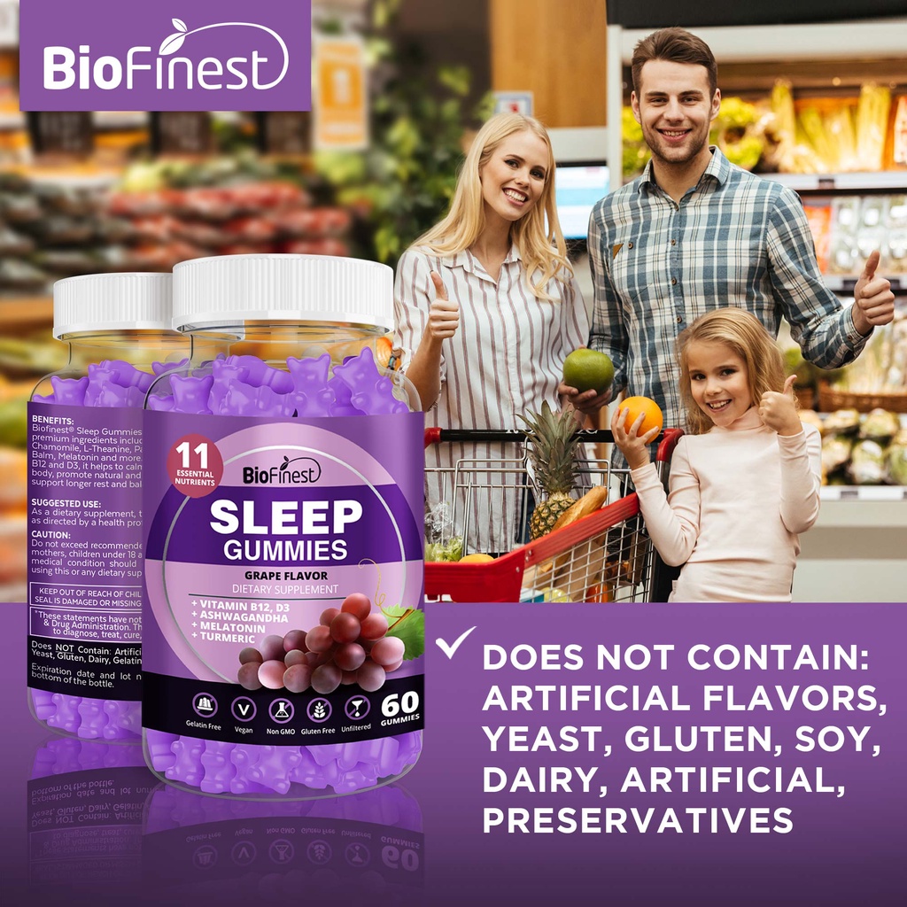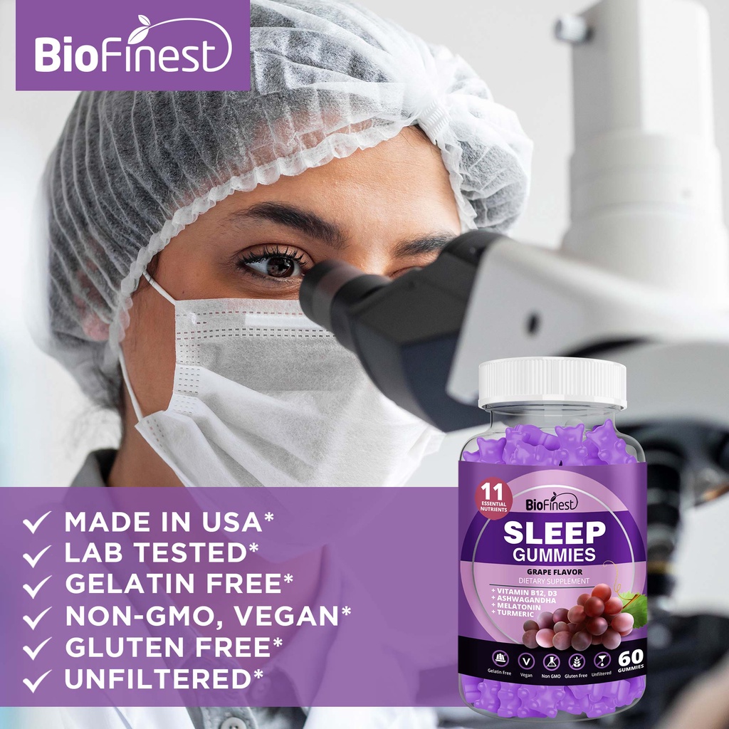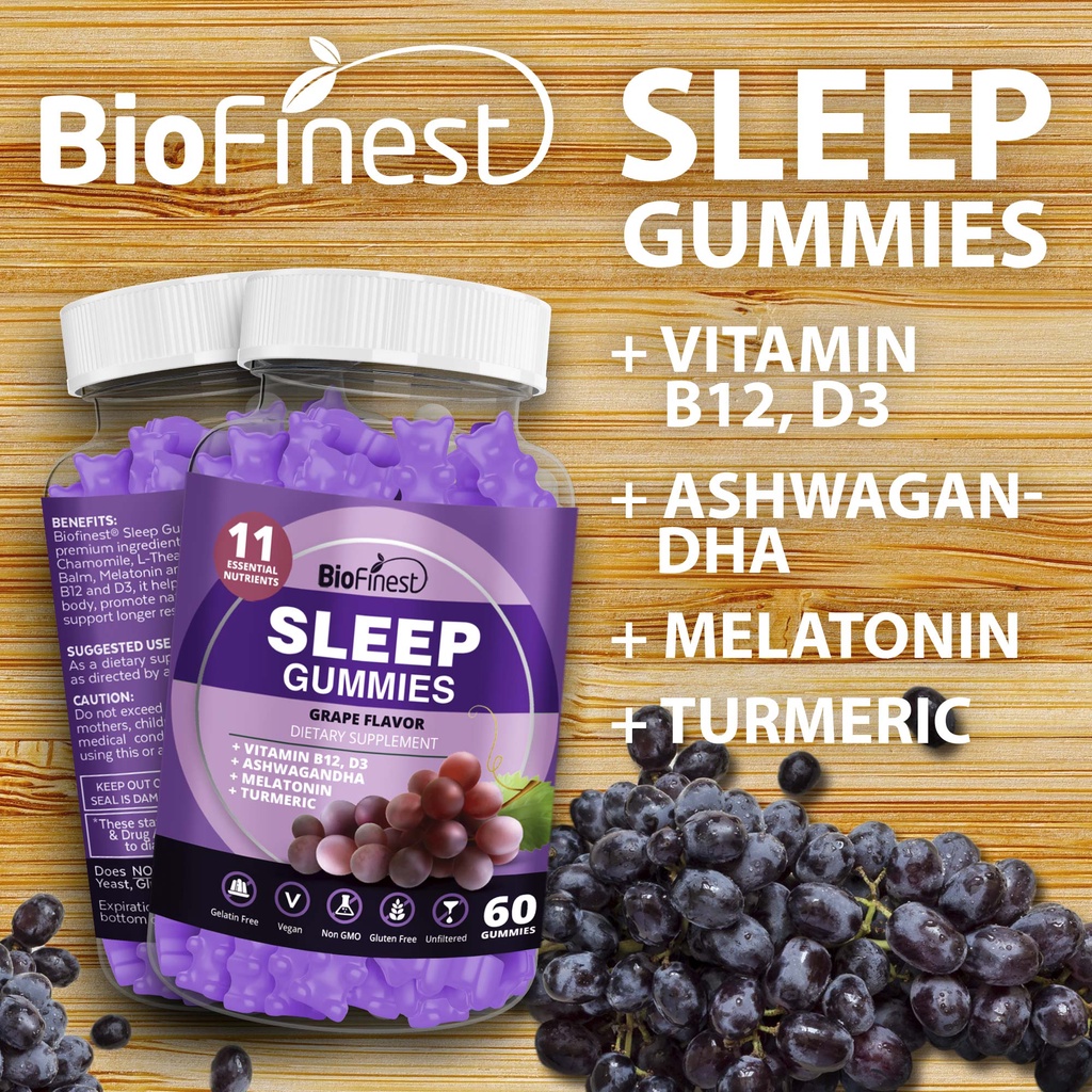 Biofinest Sleep Gummy Supplement - Melatonin Ashwagandha Turmeric Vitamin - Mind Rest Deep Sleep Men Women (60 Gummies)