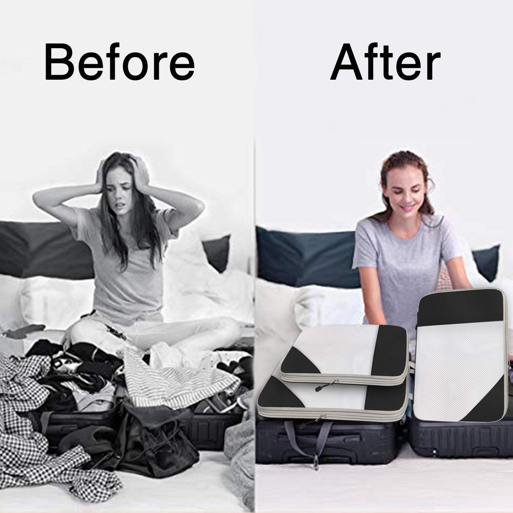Compression Packing Cubes 3 / 4 PC Organiser Bag Space Saving Storage Organizer Travel Vacuum Luggage Clothes Saver Bags
