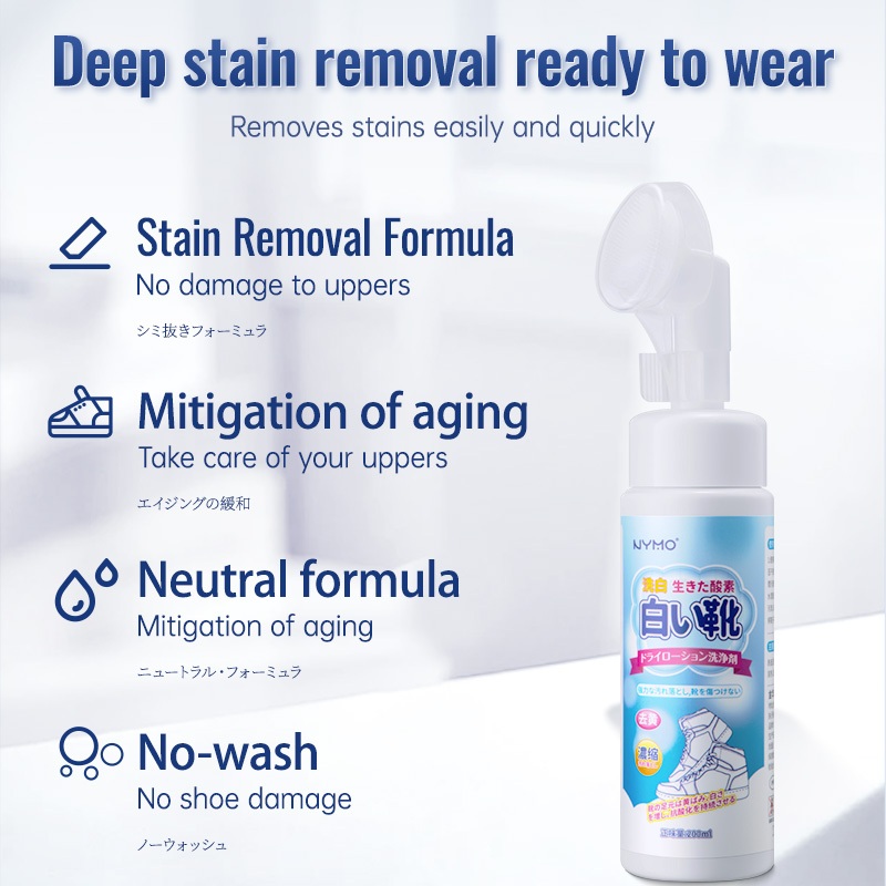 ?Japan No.1?White Shoes Cleaner Wash-Free Shoes Whitener Foam Cleaner Dry Cleaning Sneaker Cleaner Waterproof Shoe Cleaner Decontamination ,Deodorization 200Ml
