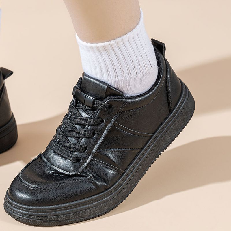 Material Quality:good elastic material Colour:black 1st time time buying for my children shoe. Yet to try it. Hopefully it works for my children for easy wearing.