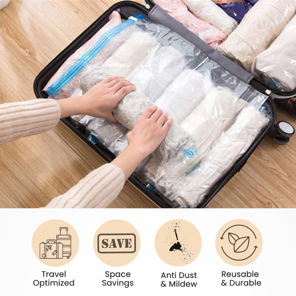 mixshop Hand Roll Travel Vacuum Bag, Household Storage, Compression, Organizer [SG READY STOCK]