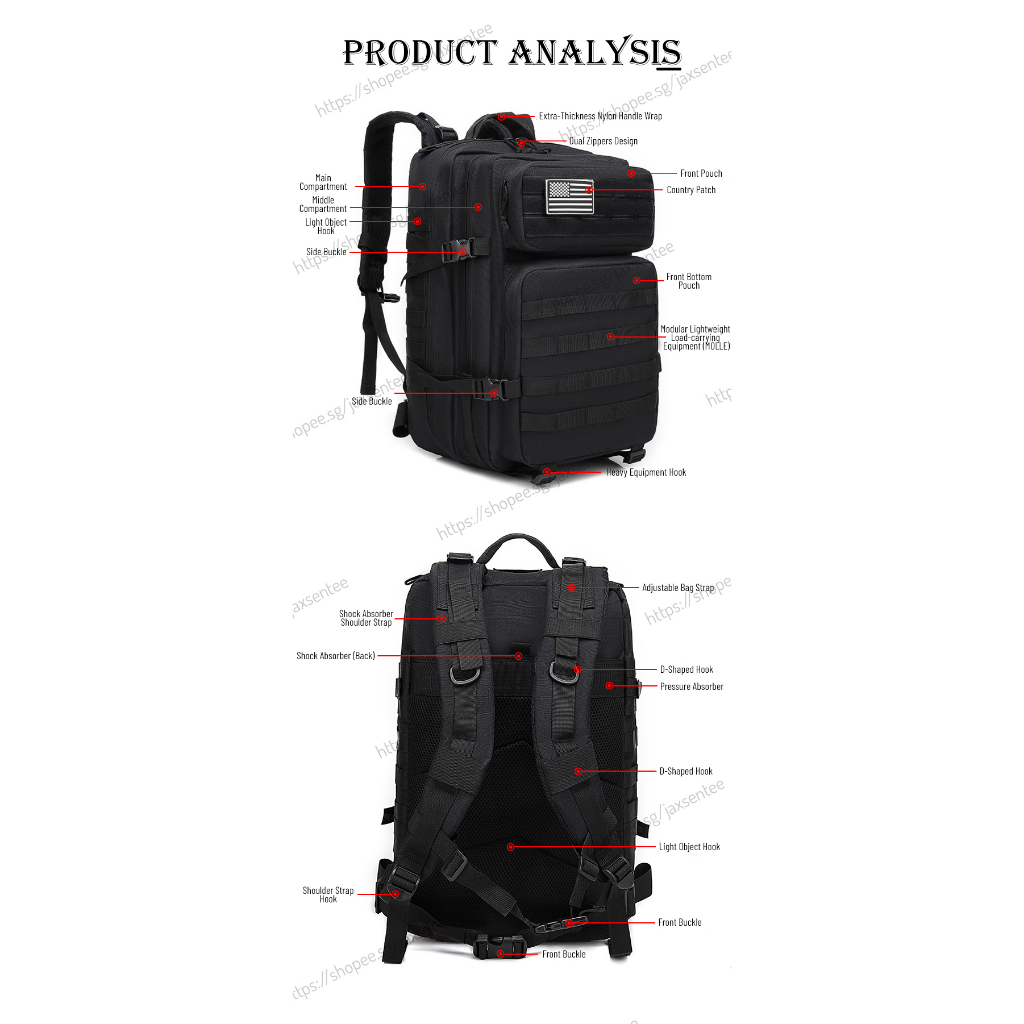 ?SG Seller!!? Army Bag / Hiking Backpack | 45L Large Size | Spine Protection Bag | Best Outdoor