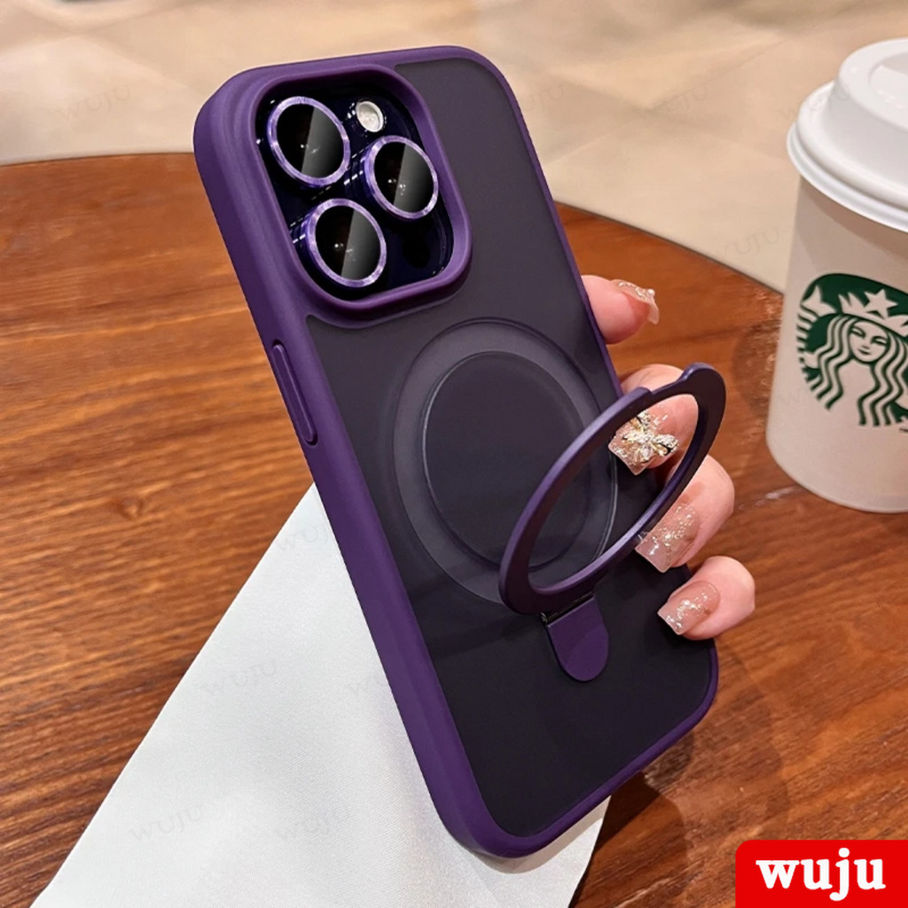 WUJU Luxury Matte Magnetic Holder Wireless Charging Phone Case Compatible For iPhone 11 12 13 14 15 Pro Max Plus